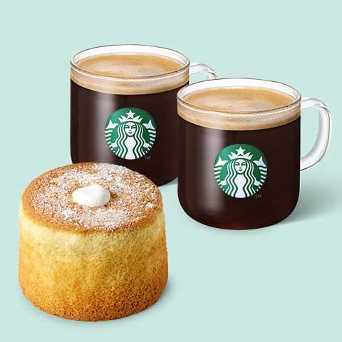 [스타벅스] 부드러운 디저트(HOT)(카페 아메리카노T 2잔+부드러운 생크림 카스텔라)